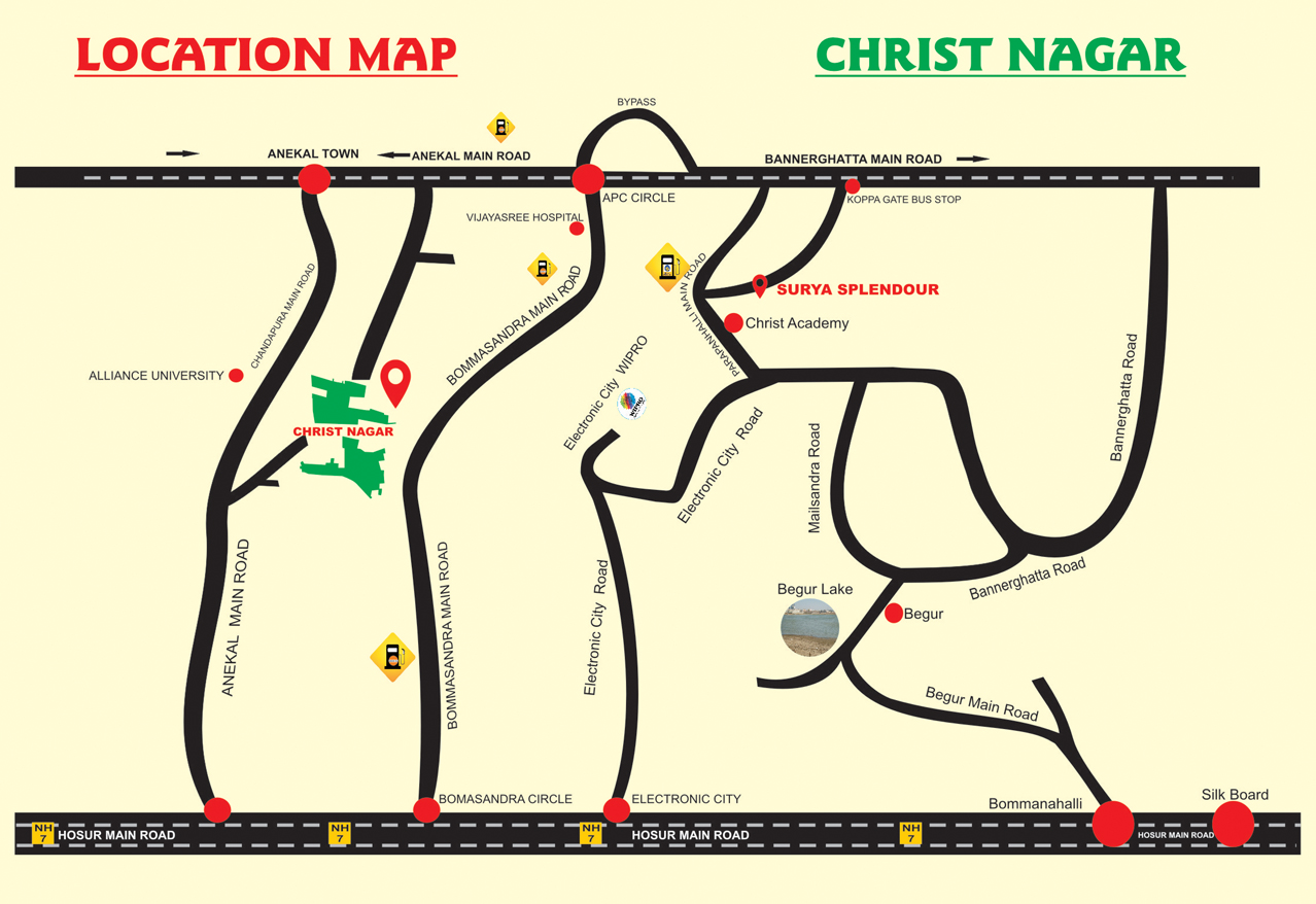 The project "Atlantis City" which consists of 1076 plots in sizes of 30X40, 30X50 and 40X60 (all measurements in square feet). It is located just 10 minutes away from Electronic city. CHRIST NAGAR, offers a range of villa plots, amidst vast sprawling green spaces. Complete with a range of world-class amenities, this gated community brings to you the best of city living, away from its hustle-bustle.